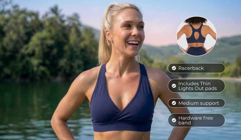 For anyone who prioritizes comfort and hates anything poking or digging. This hardware-free bra features a racerback design with zero clips, slides, or adjusters - just smooth, uninterrupted comfort perfect for yoga, sleep, or long flights. Quick-dry fabric makes it the ultimate "land-to-water" bra for paddle boarding and beach days. Flattering for all cup sizes with a playful deep V-neckline that looks great under any top.