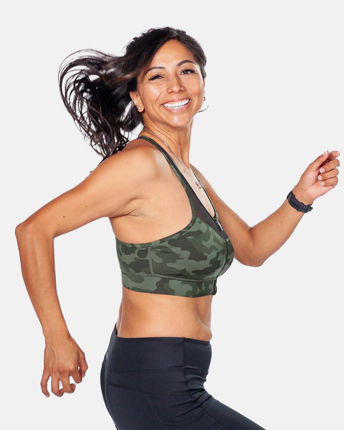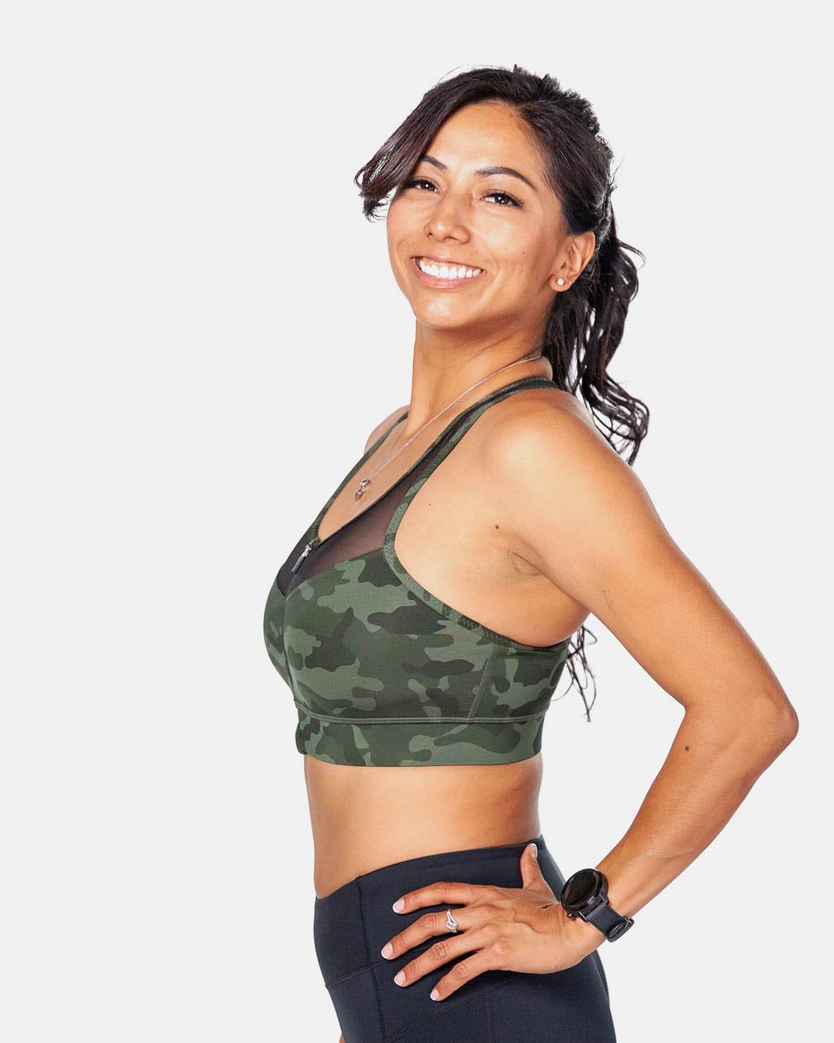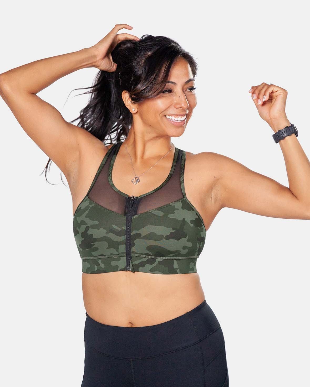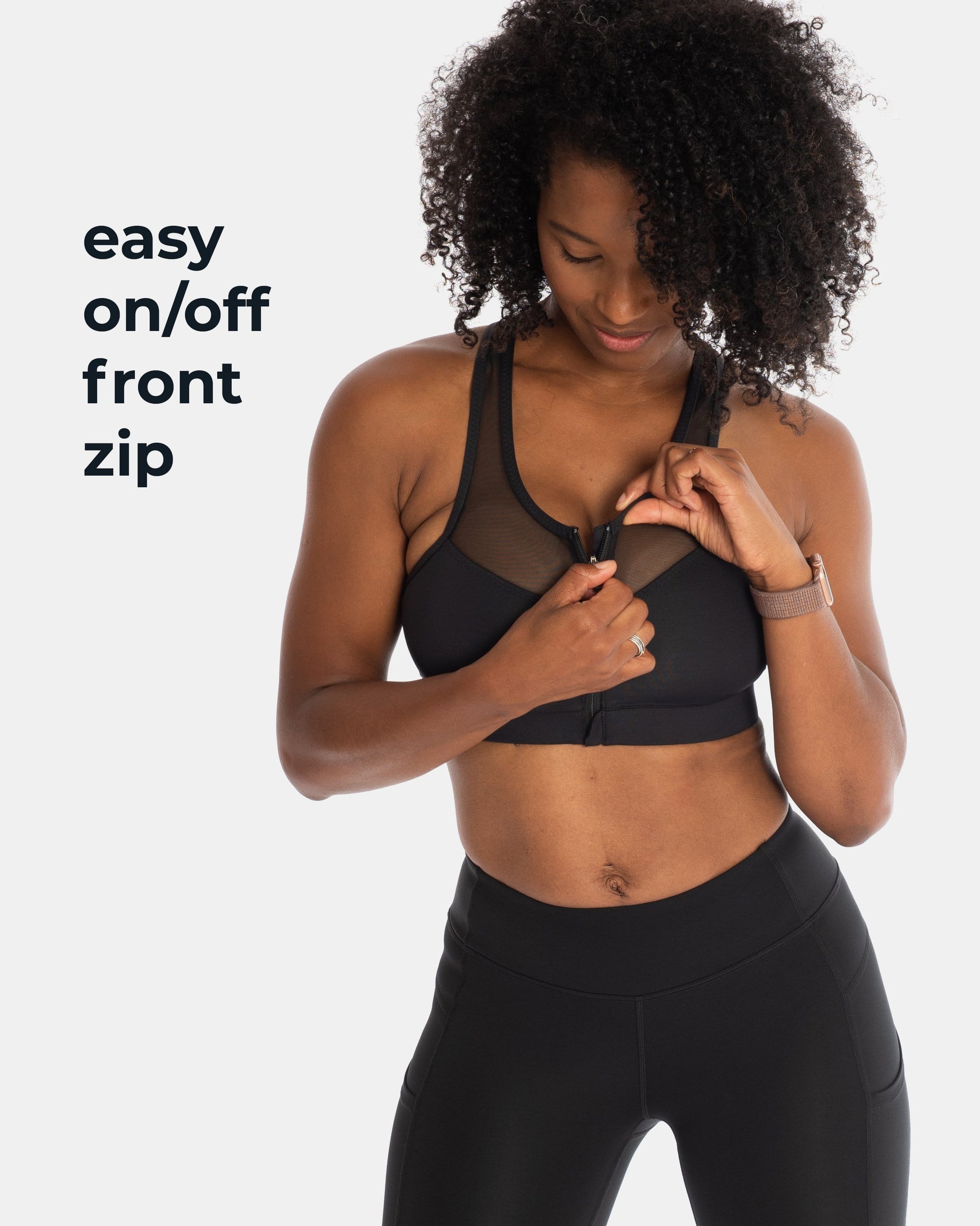 The Closer is a zipper front sports bra with breathable stretch mesh panels. Behind the zipper, you'll find dual clasps for an extra layer of security.